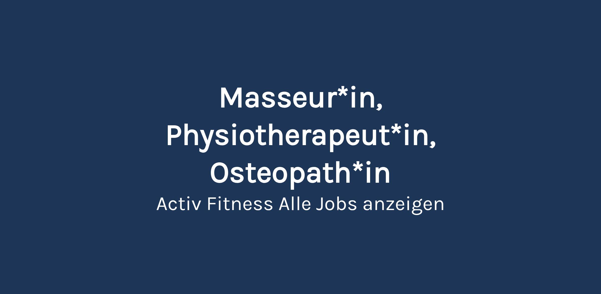 Masseur*in, Physiotherapeut*in, Osteopath*in Im Rahmen unserer neuen Organisation suchen wir eine*n Masseur*in, der/die unseren Gästen Auszeiten ermöglicht. Schätzt du die Kombination von Beratung und der Ausführung professioneller Massagen? Dann bist du richtig bei uns! Was du bewegst Du führst professionelle Massagen aus Du beratest und betreust unsere Mitglieder sowie Nichtmitglieder Du vermittelst eine entspannte Atmosphäre Du wirbst aktiv für die Massageangebote Du stellst die Sauberkeit und Ordnung sicher Du führst selbständig eine eigene Praxis Was du mitbringst Bildung: Abgeschlossene Grund- oder Weiterbildung Fachrichtung: Abgeschlossene oder laufende Ausbildung als Masseur*in mit Krankenkassenanerkennung Berufserfahrung: 1 bis 3 Jahre Erfahrung Als Masseur*in Du bist bereit, abends sowie an Wochenenden und Feiertagen zu arbeiten Du bist aufmerksam, belastbar und dienstleistungsorientiert Du legst Wert auf ein gepflegtes Erscheinungsbild Deutsch (verhandlungssicher) Was wir dir bieten Zentraler Arbeitsort: Unserer Studios befinden sich an gut erschlossener zentraler Lage Handy-Abo: Nationales Flat-Abo ab CHF 10.- / Monat (Swisscom /digitec connect) Migros Bank: Spesenfreies Privat- und Anlagekonto mit Vorzugszinsen Du-Kultur: Wir stehen für ein respektvolles Miteinander auf Augenhöhe Es werden nur Online-Bewerbungen über das Bewerbungsportal berücksichtigt. Rekrutierungsprozess Vorselektion der Bewerbungen Fachgespräch Angebot & Vertragsausstellung Kontakt Frau HR Business Partner Keine passenden Stellen? Gib ein Suchabo auf, um passende Stellenangebote bequem per E-Mail zu erhalten. Job-Abo erstellen jid6775e34a jit0312a jiy26a