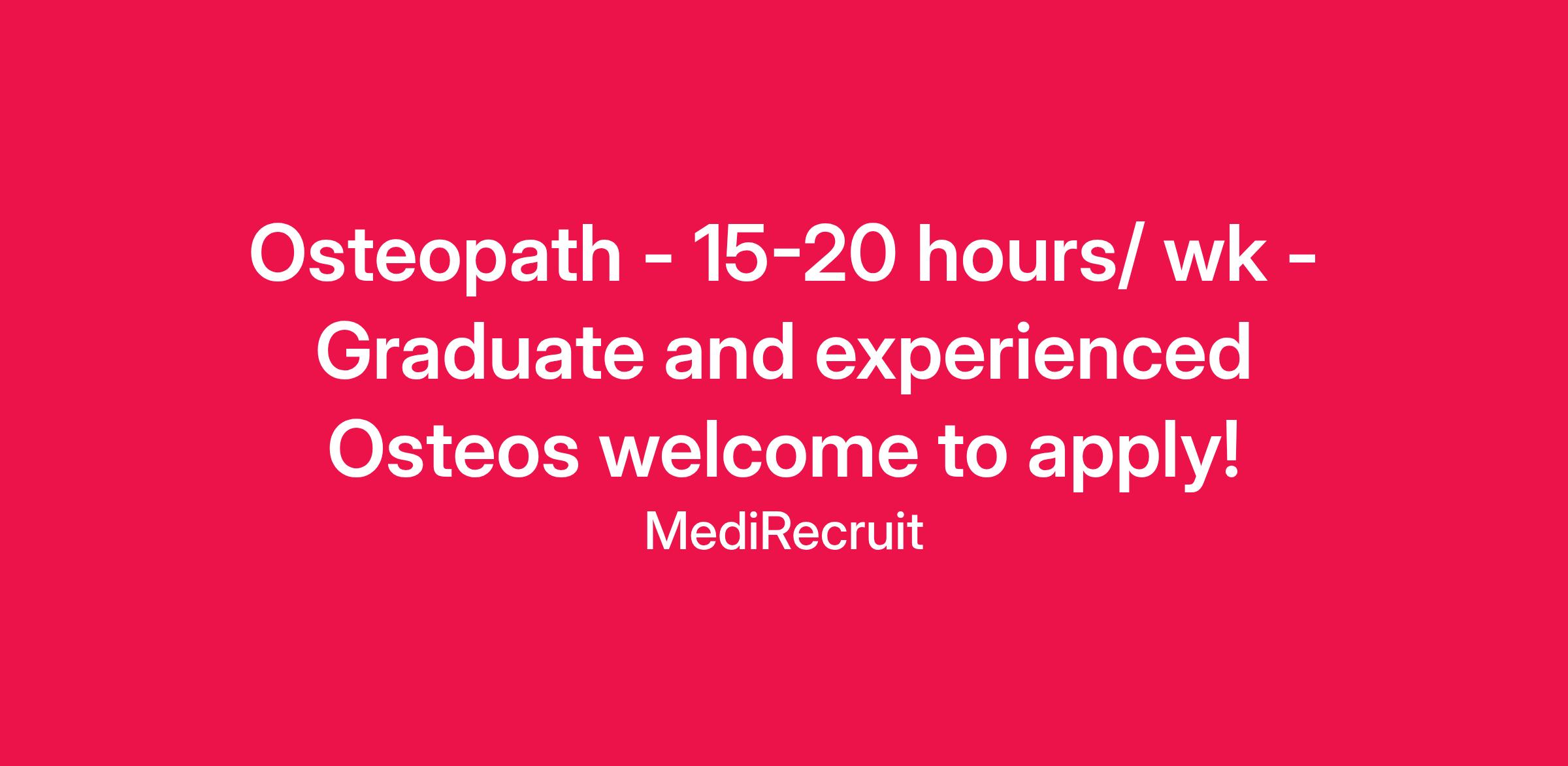 Our Client:Our client is a well-established busy clinic in the heart of Cranbourne is a collaborative clinic offering diverse osteopathic services, including shockwave therapy, dry needling, and women’s health, within a bustling health-focused hubAbout the Role: We’re seeking an osteopath to join the team part-time initially, with the potential to transition to full-time for the right candidate. Preference is for an employee position (base salary plus commission), but subcontractor arrangements will be considered. Our client offers flexible shifts, regular in-house CPD, and ongoing mentoring from two experienced osteopaths, with a start date as soon as possible. We welcome new graduates and experienced osteopaths (12+ months preferred) who are trained in or eager to learn dry needling and shockwave therapy. We’re looking for someone who knows what they want in a clinic, values a supportive environment, and is seeking a long-term place to grow their career.Benefits: Flexible scheduling Regular in house PD, mentoring and support by experienced Osteo's Great admin support staff Salary or sub contracting About You: Tertiary degree in Osteopathy Ability to assess, diagnose and make decisions regarding patients Desire to constantly learn new techniques and procedures Demonstrated ability to work in a team environment Strong work ethic and commitment to clinical excellence Excellent communication and interpersonal skills Police Check or willing to obtain Working with Children Check or willing to obtain Professional Indemnity Insurance Medicare Provider Number Eligible to work permanently in Australia About Us: MediRecruit provides a specialist healthcare recruitment and career advisory service for Allied Health professionals in Australia, New Zealand, and the United Kingdom. Our dynamic team of recruiters have healthcare backgrounds and are passionate about sharing their expert advice. Refer a Friend: Do you know a health professional who would be perfect for this role? Refer them and earn a shared $500 referral bonus! How to Apply: Please apply and one of our Healthcare Specialists will call you for a confidential discussion. Or contact Danielle Weedon- danielle@medirecruit.com or 0437 483 364. Only shortlisted candidates will be contacted.