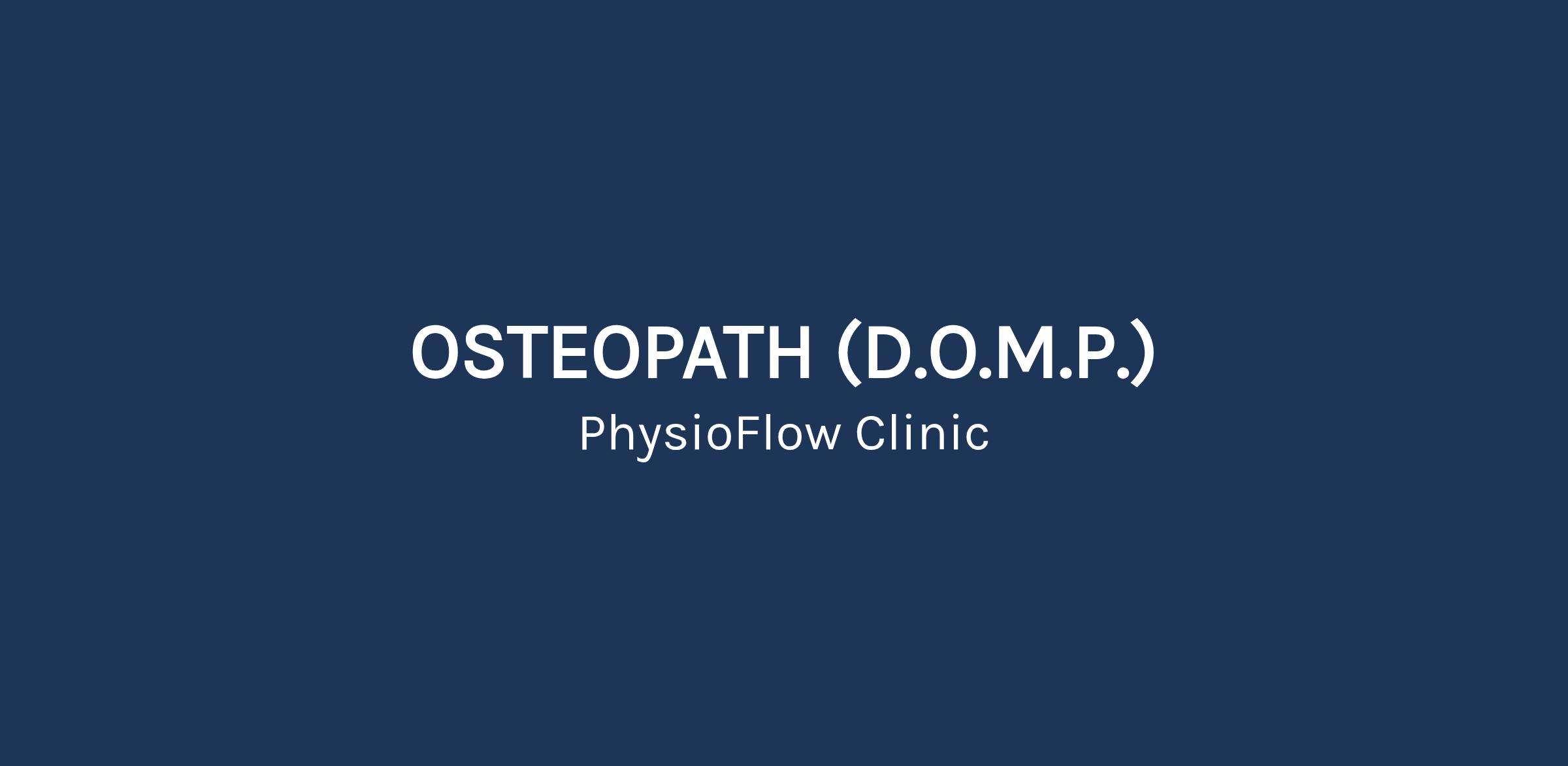 Job Summary Seeking Skilled Osteopathic Manual Practitioner. Required license or certification: Graduates of diploma-level osteopathy programs (D.O.M.P.) from institutions like the Canadian Academy of Osteopathy (CAO) and the Canadian College of Osteopathy (CCO) - OSTCAN certification Located at the heart of Thornhill; PhysioFlow is a multi-disciplinary Physiotherapy & Sports Injury Clinic committed to providing exceptional world-class rehabilitation services. We are currently seeking a part-time skilled Osteopathic Manual Practitioner to join our busy practice. www.physioflow.ca Job Type: Part-time Job Type: Part-time Work Location: In person