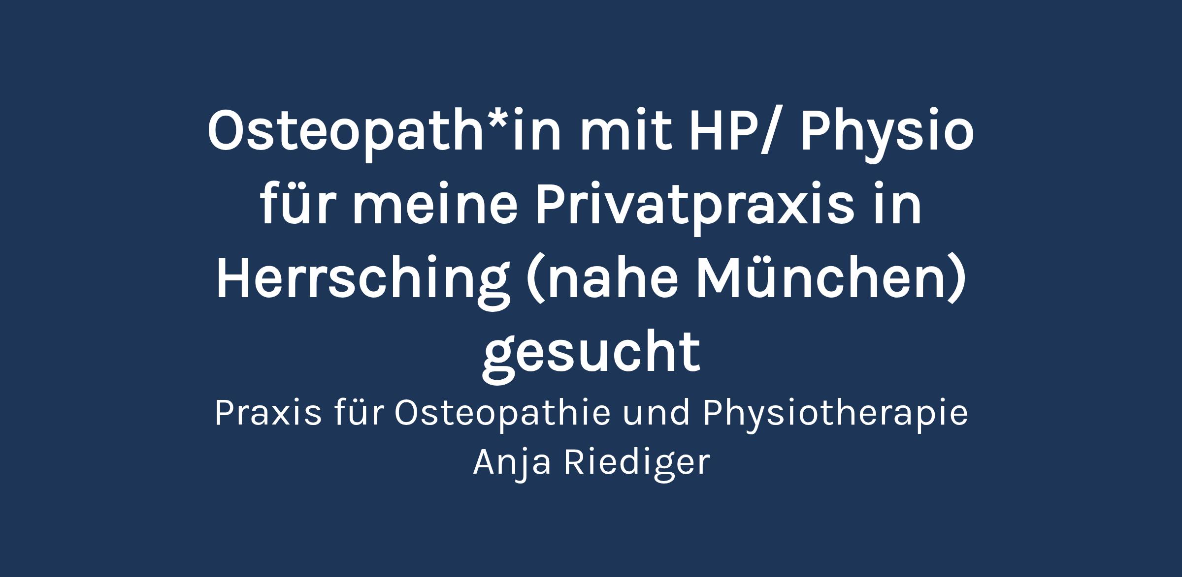 Ich suche für meine Privatpraxis in Herrsching eine*n engagierte*n und motivierte*n Osteopath*in/Physiotherapeut*in für ca 25 Std/ Woche in Festanstellung. HP und mindestens 3 Jahre Berufserfahrung ist Voraussetzung. Ich biete eine wunderschöne, neu renovierte, moderne und sonnendurchflutete Praxis, einen eigenen Behandlungsraum, ein enges Miteinander, eine wertschätzende Atmosphäre und selbstverständlich ein gutes Gehalt. Die Praxis liegt in Seenähe und wenige Gehminuten von der S-Bahn entfernt. Melde dich gerne unter anjariediger@web.de. Art der Stelle: Teilzeit, Festanstellung Gehalt: 37,00€ - 40,00€ pro Stunde Leistungen: Flexible Arbeitszeiten Gleitzeit Arbeitsort: Vor Ort