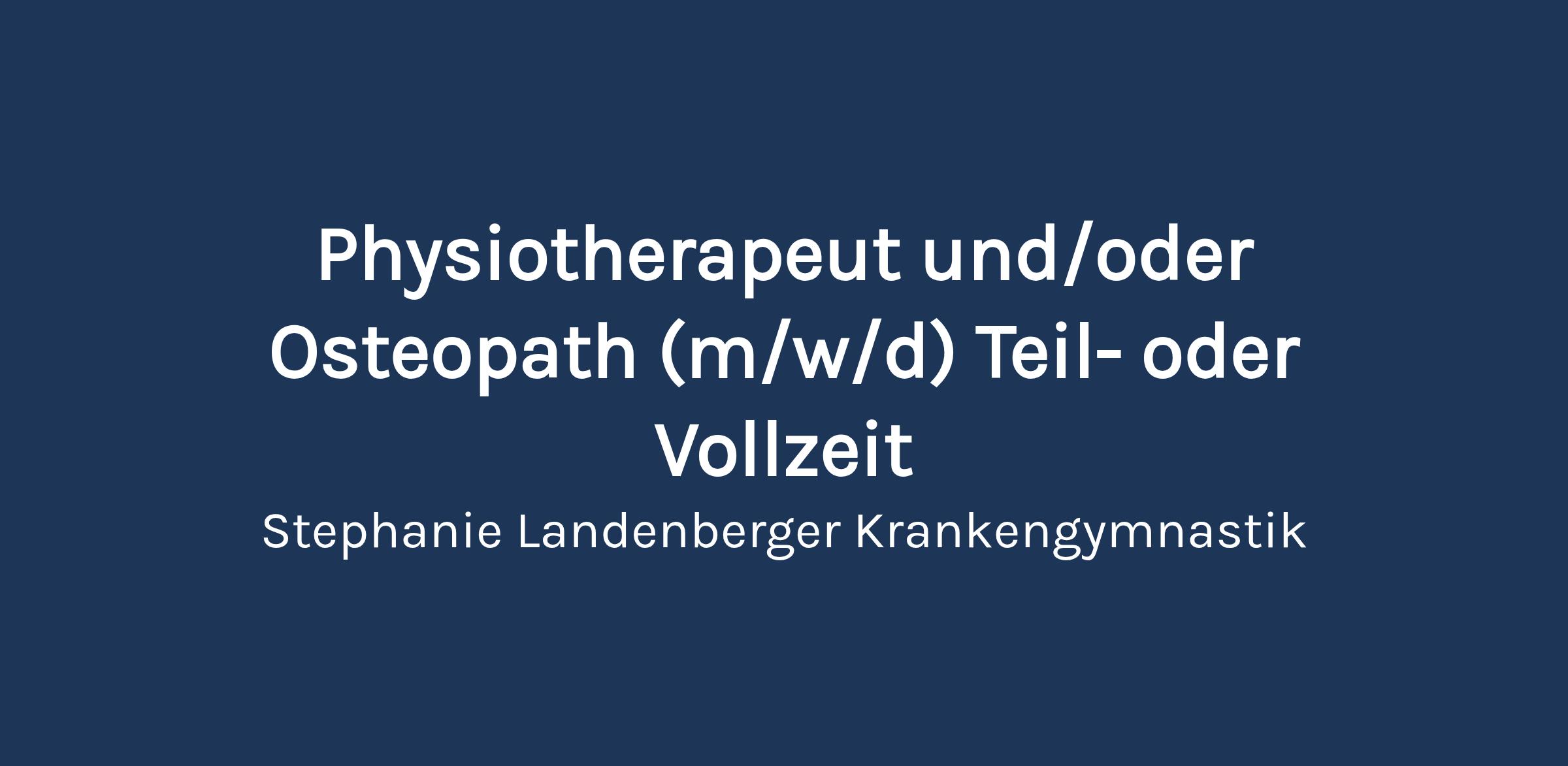 Du bist auf der Suche nach einem Job, bei dem du nicht nur deine fachlichen Fähigkeiten, sondern auch dein Einfühlungsvermögen unter Beweis stellen kannst? Dann könnte die Stelle als Physiotherapeut: in und/oder Osteopath: in bei Physiotherapie Stephanie Landenberger genau das Richtige für dich sein! In unserer Praxis legen wir großen Wert darauf, unseren Patient: innen individuelle und ganzheitliche Behandlungsansätze zu bieten. Hier hast du die Möglichkeit, in einem engagierten und freundlichen Team zu arbeiten und dabei sowohl deine eigenen Ideen einzubringen als auch von den Erfahrungen deiner Kolleg: innen zu profitieren. Wenn du Lust hast, Teil eines dynamischen Umfelds zu werden, in dem der Mensch im Mittelpunkt steht, freuen wir uns darauf, dich kennenzulernen! Aufgaben - Durchführung einer umfassenden Anamnese und Diagnostik - Erstellung und Umsetzung individueller Therapiepläne - Anwendung manueller und physikalischer Therapie - Anleitung und Betreuung von Patienten - Interdisziplinäre Zusammenarbeit - Dokumentation und Evaluation - 30 Wochenstunden, die individuell einteilbar sind # Qualifikation - Abgeschlossene Ausbildung als Physiotherapeut: in und/oder Osteopath: in - Erfahrung in der Behandlung von Patienten mit unterschiedlichen Beschwerden - Empathie und Freude am Umgang mit Menschen - Teamfähigkeit und Engagement - Bereitschaft zur kontinuierlichen Weiterbildung # Benefits - 40 Minuten-Behandlungen - Übertarifliche Bezahlung - Interne sowie externe Fortbildungen - Selbstständiges Arbeiten - Flexible Arbeitszeiten - Hochwertige Ausstattung - Großer Kursbereich - Erfahrenes Team Bewirb dich jetzt und gestalte deine Zukunft mit uns! Für uns kommen Bewerber aus dem gesamten Bundesgebiet, sowie dem Ausland in Frage. Bei Bewerbern aus dem Ausland sollten aber bereits grundlegende Deutschkenntnisse vorhanden sein.